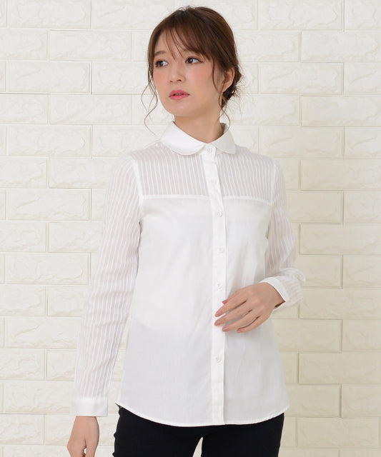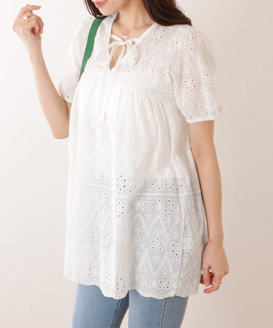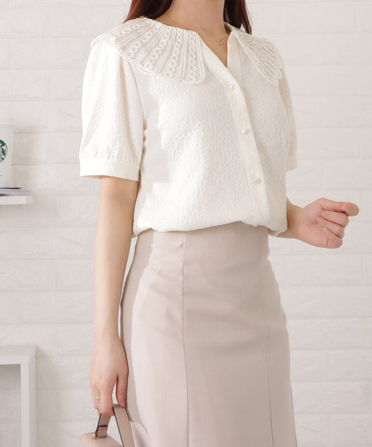 【選べる袖2タイプ】レース刺繍丸襟ブラウス