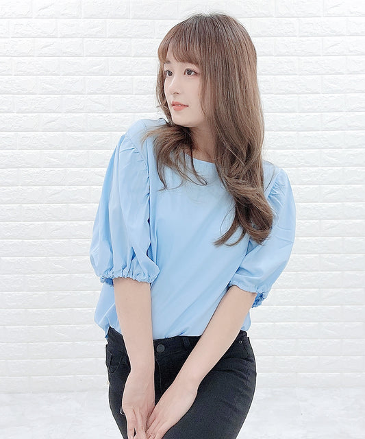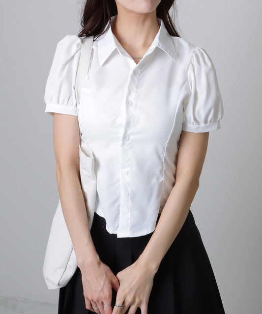 コンパクト スリム 半袖 パフスリーブ ブラウス