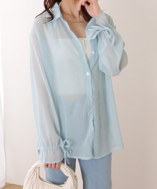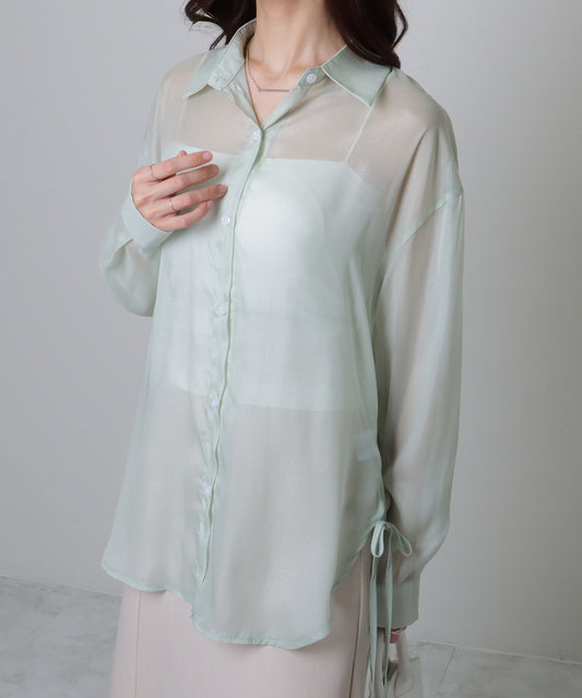 オーバーサイズ サイド リボン 長袖 シアー ブラウス
