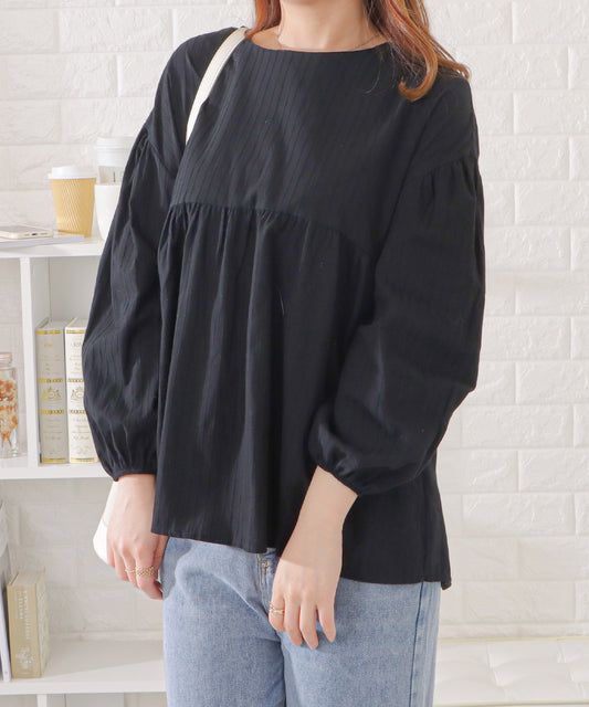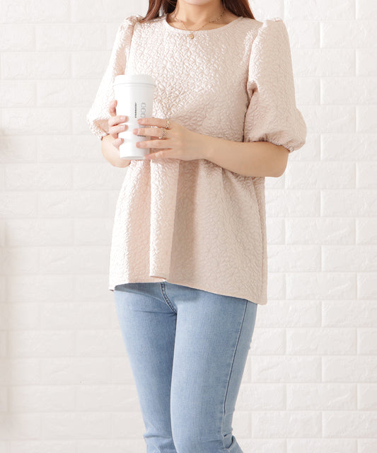 クルーネック 五分袖 ボリュームスリーブ ブラウス