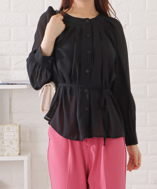 ウエスト ギャザー 長袖 ゆる ブラウス