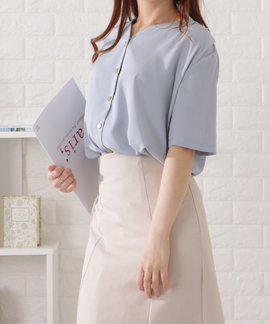ギャザー 切替 襟付き 半袖 ロング シャツ