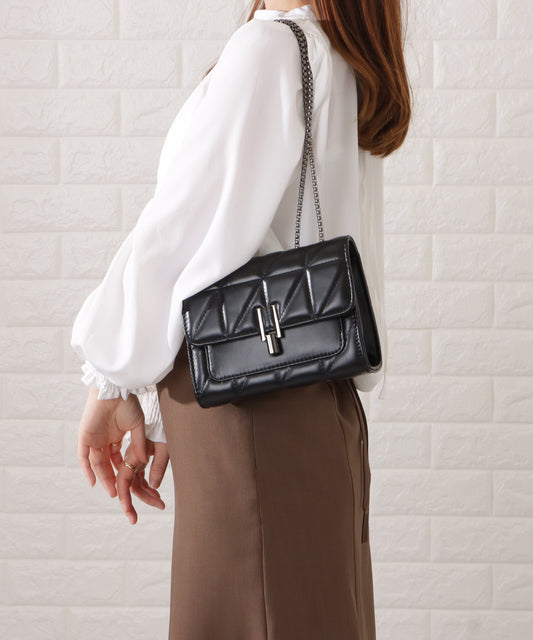 ワンカラーVモチーフ付きキルティングショルダーバッグ