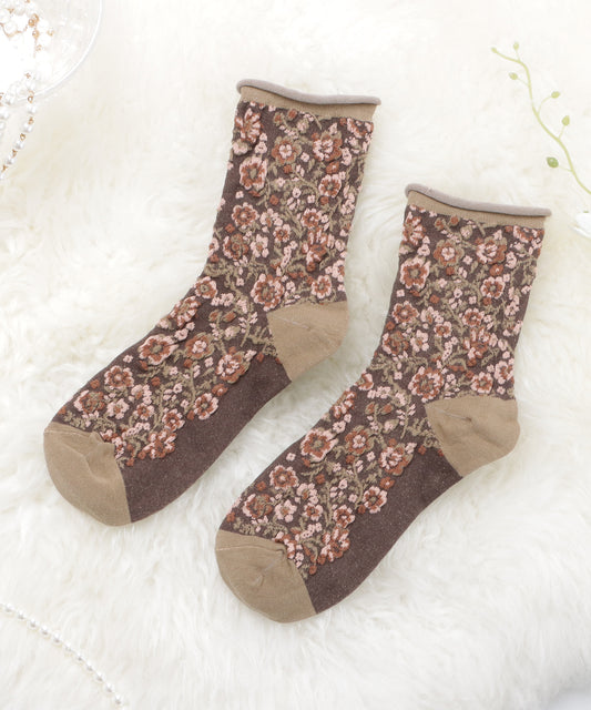【5足セット】 3D フラワー レリーフ デザイン クルー ソックス