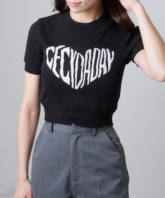 ハートロゴ コンパクト 半袖 ニット プルオーバー