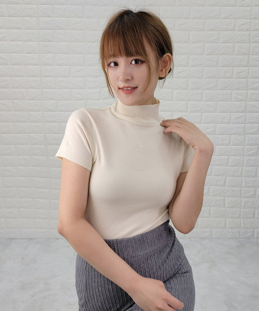 バタフライスリーブ プリーツ 半袖 ニット プルオーバー