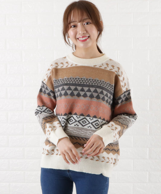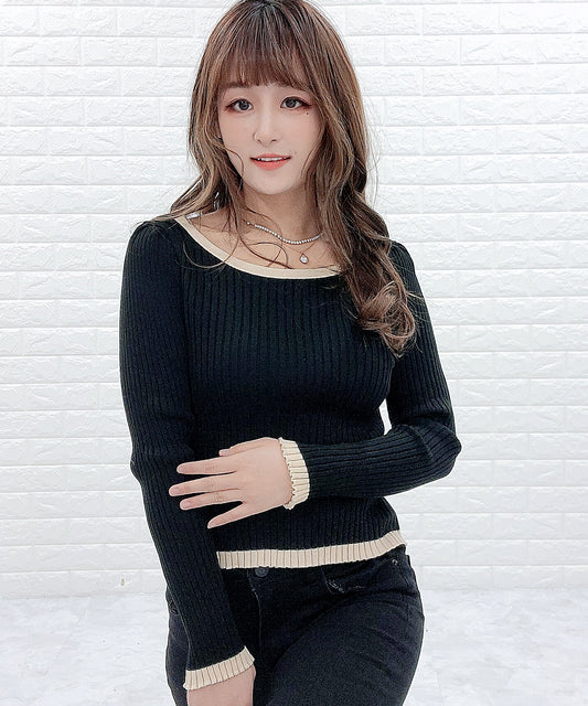バイカラー ラグラン袖 長袖 ニット プルオーバー