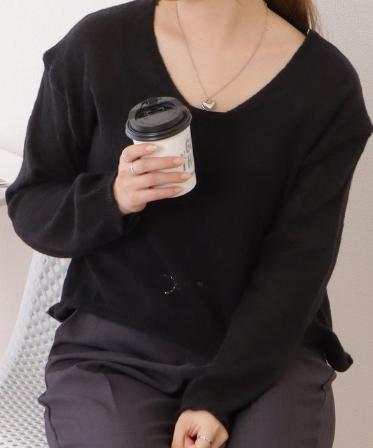 ドロップショルダーゆるシルエットクロップドニットトップス