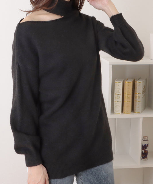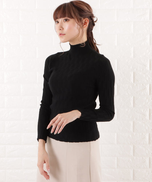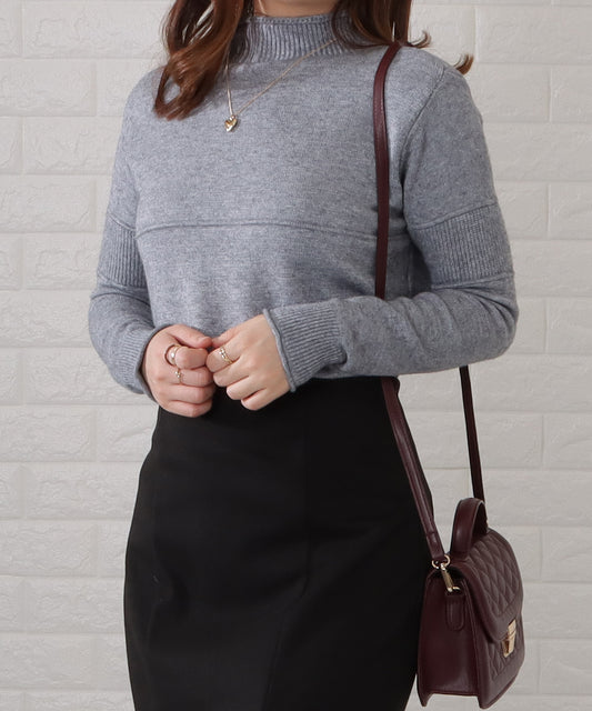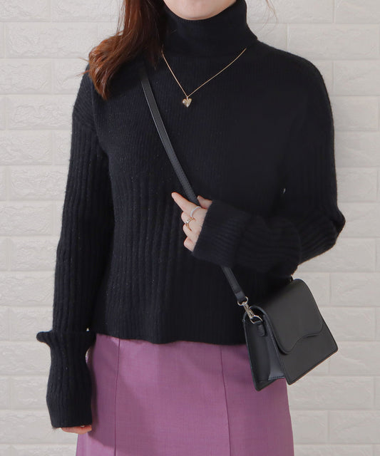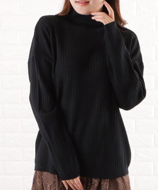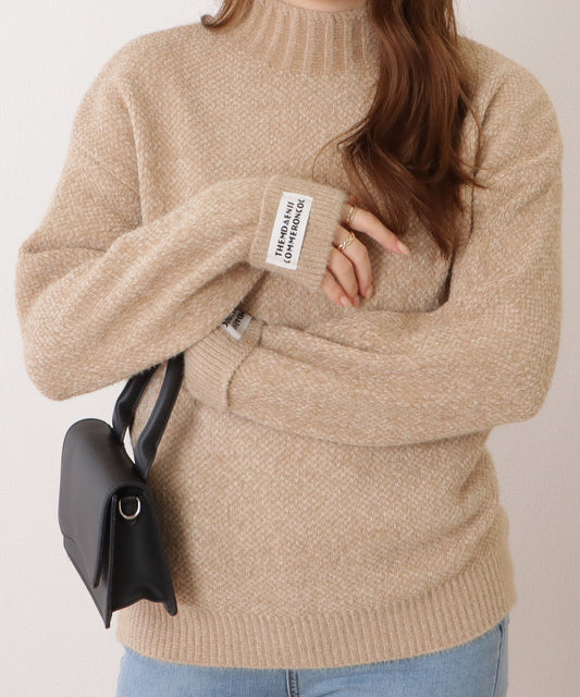 ネームタグ付きハイネックベーシックニットプルオーバー