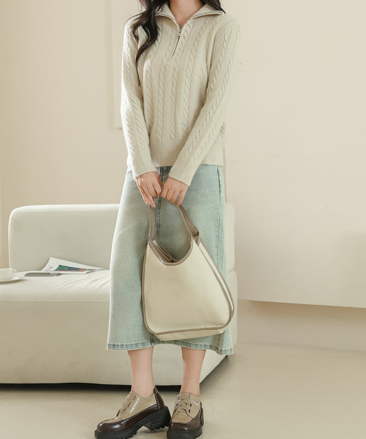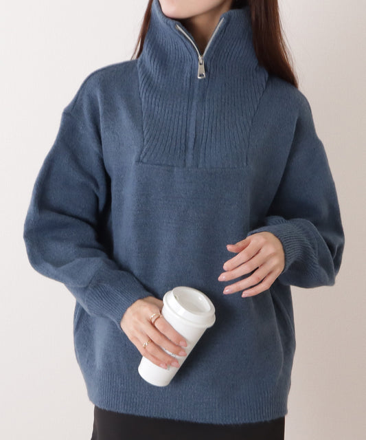 ハーフジップ切替リブ長袖ニットプルオーバー