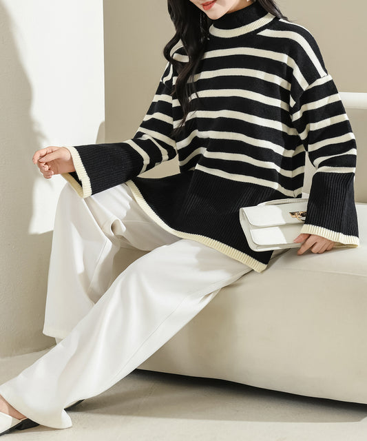 ハイネック リブ ドッキング ボーダー柄 ニット トップス