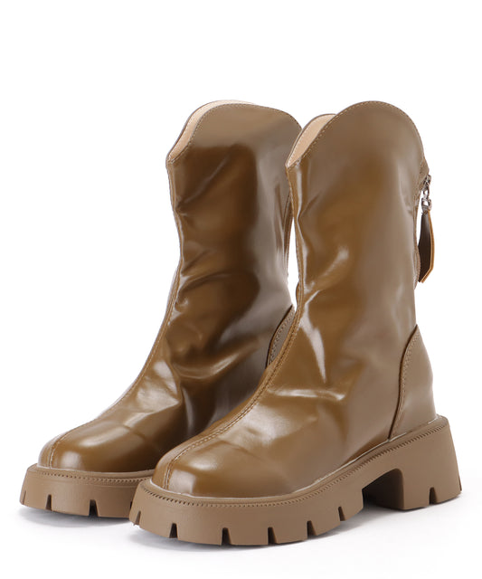 バックファスナー ウエスタン 厚底 ショート ブーツ