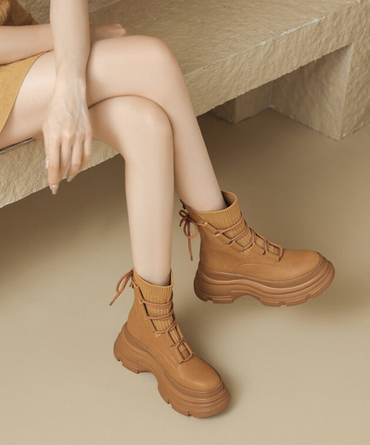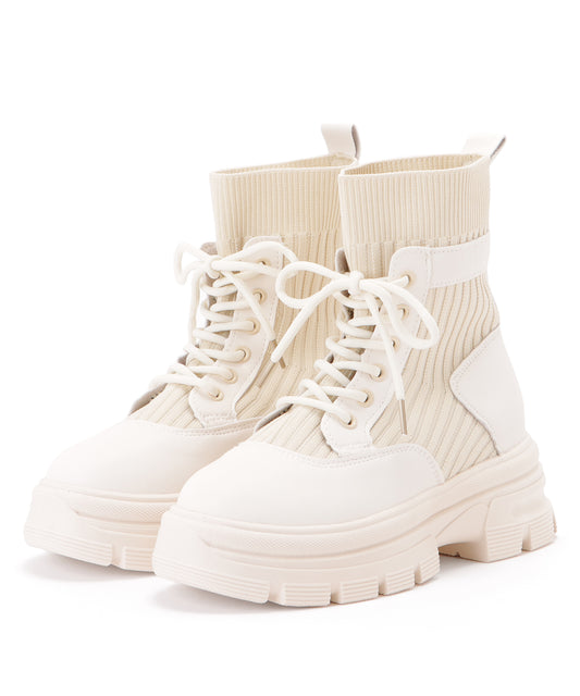 ニット ドッキング レースアップ 厚底 ショートブーツ