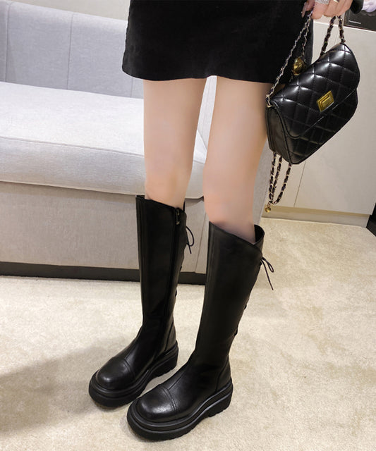 バック レースアップ 厚底 フラット ロング ブーツ