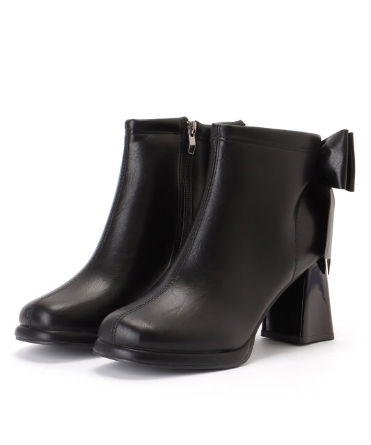 バック リボン チャンキー ショート ブーツ