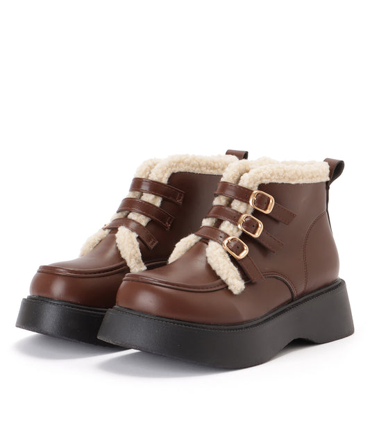 トリプル ベルト 裏ボア ボリューム ショート ブーツ