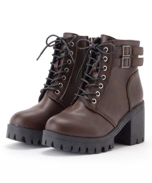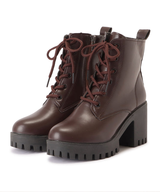 チャンキーヒールレースアップショートブーツ