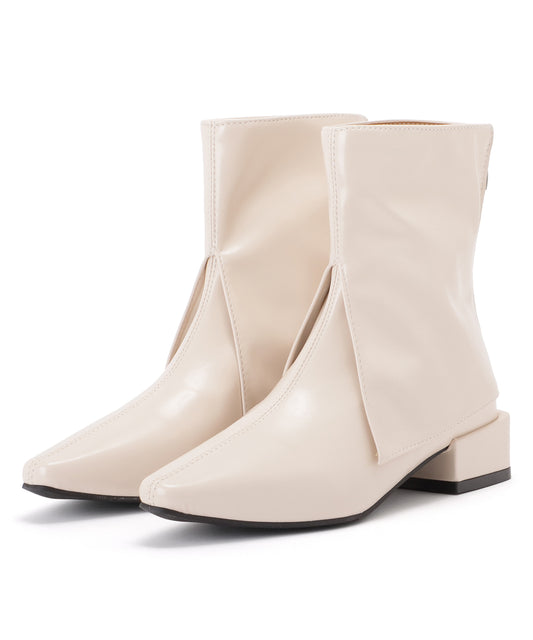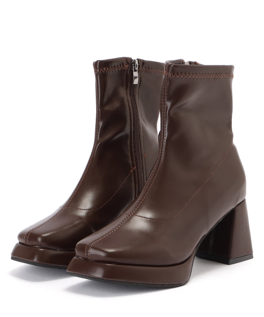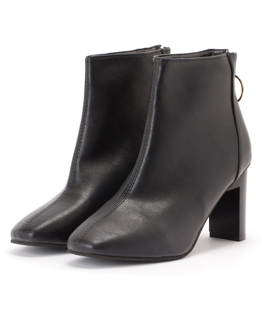 チャンキーヒールレザー調スクエアショートブーツ