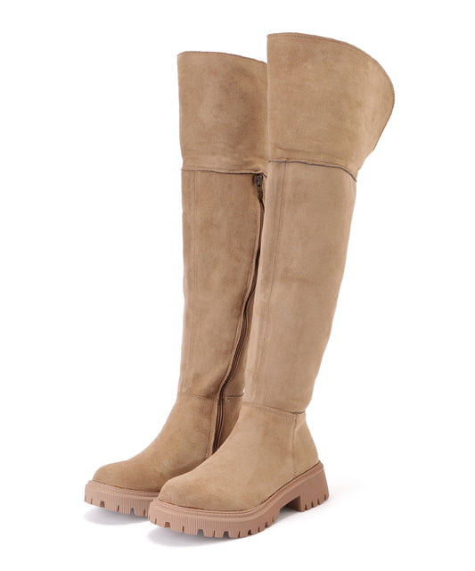 バックスリット入りスエード調ニーハイブーツ