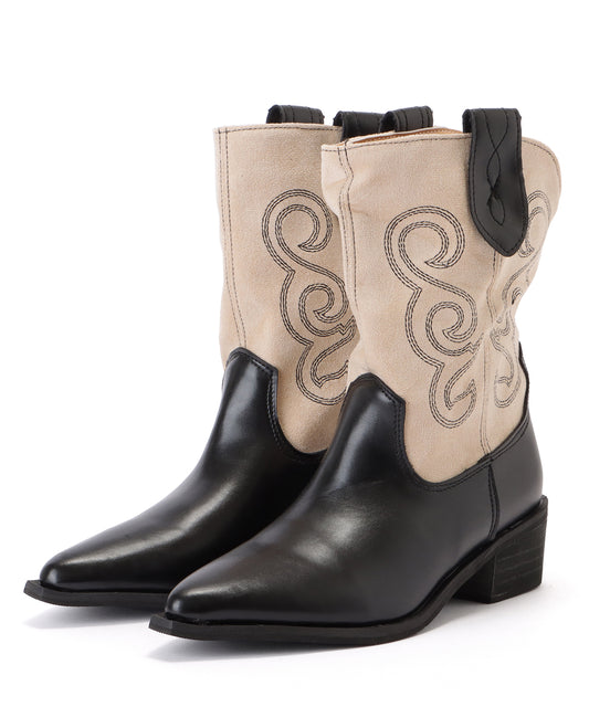 売り切れバイカラーミドル丈刺繍ウエスタンブーツ