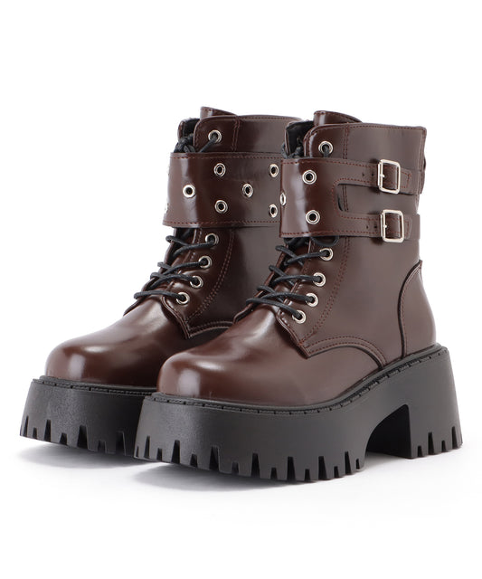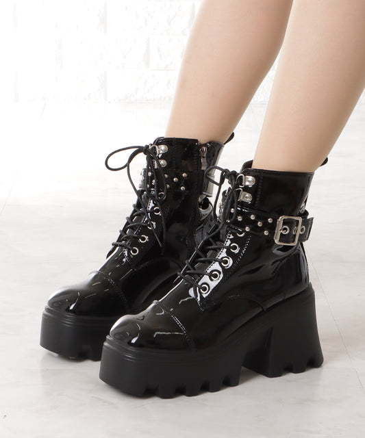 ハードベルト付レースアップ厚底ブーツ