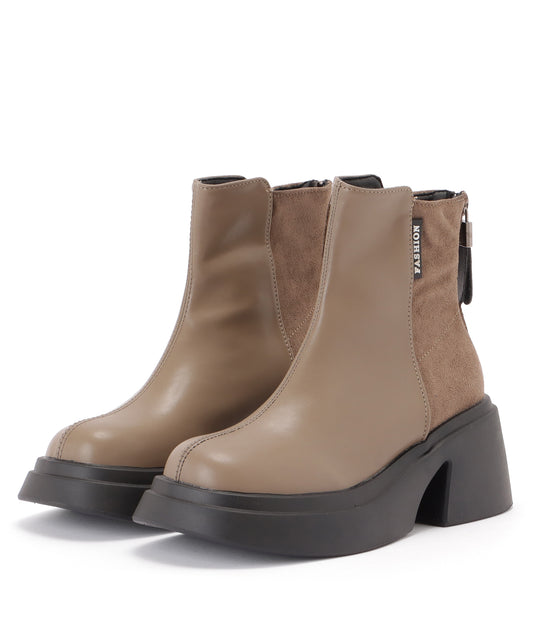 バックファスナードッキングチャンキーショートブーツ