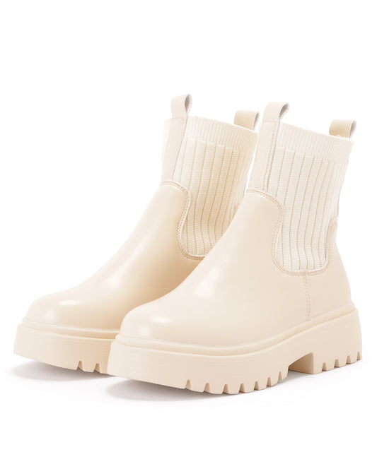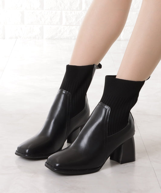 ニットドッキングレザー調チャンキーショートブーツ