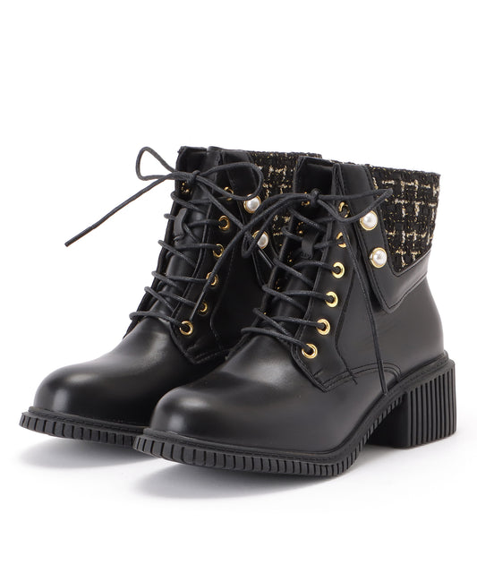 ツイードミックスレースアップショートブーツ