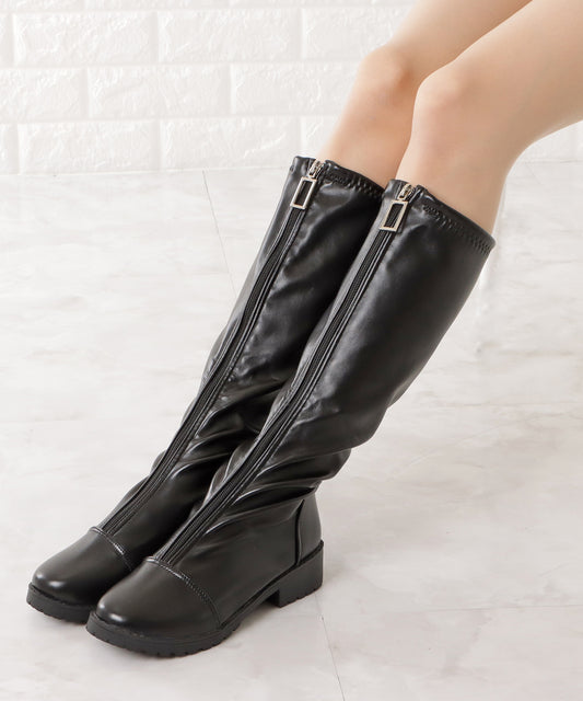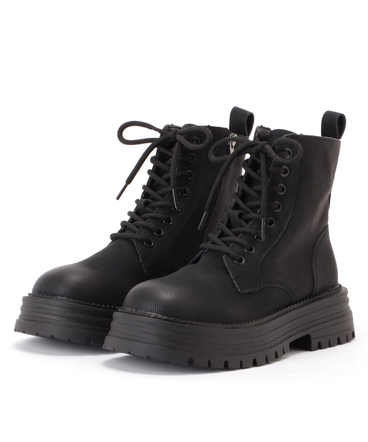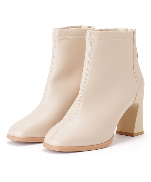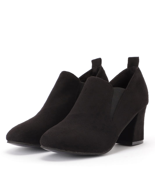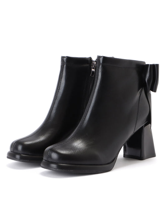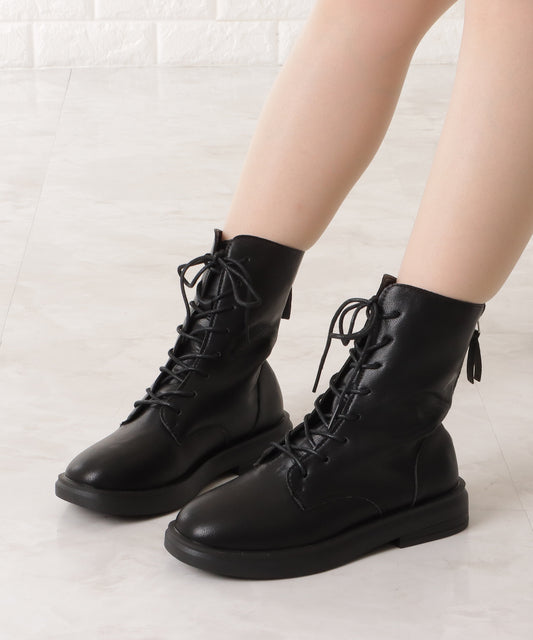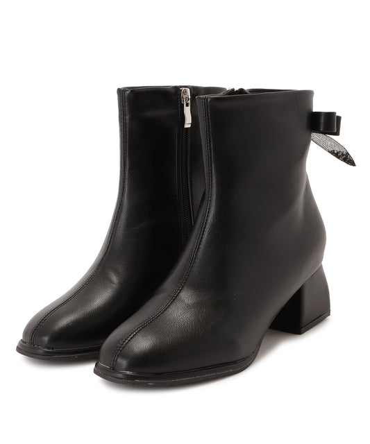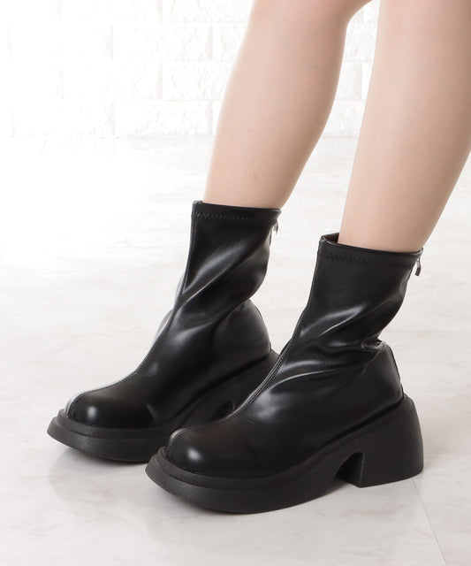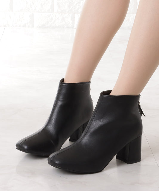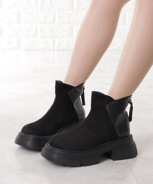 バックファスナー付きドッキングフェイクレザーショートブーツ