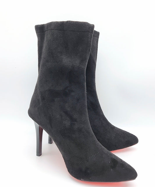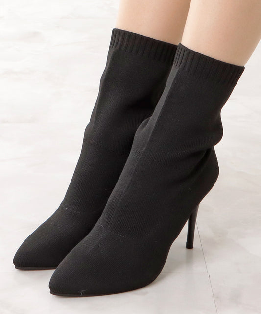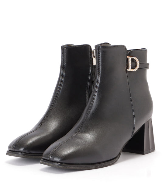 ビジュー チャーム付き レザー調 ハイヒール ショート ブーツ