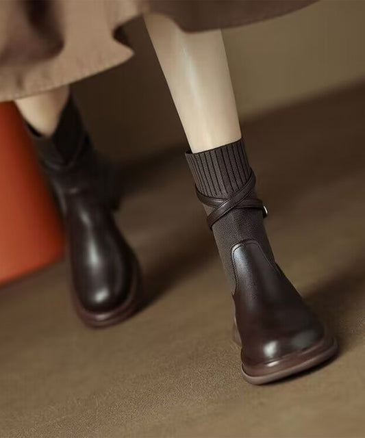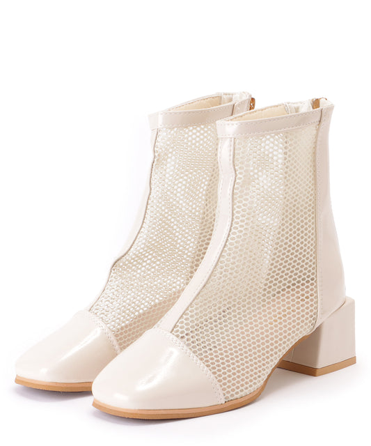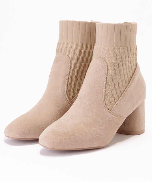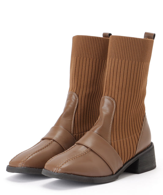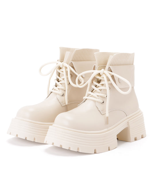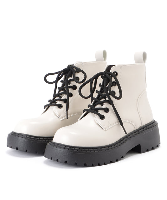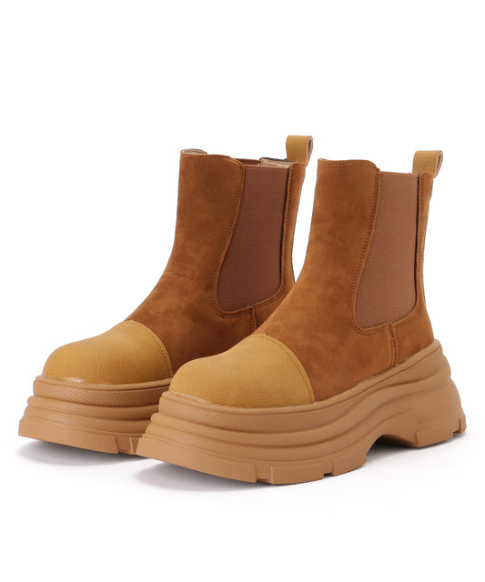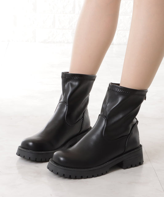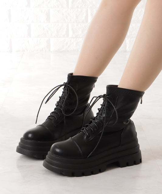 ラウンドトゥ 異素材 切り替え 厚底 ショート ブーツ