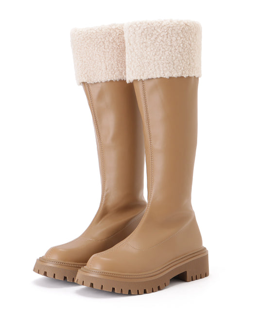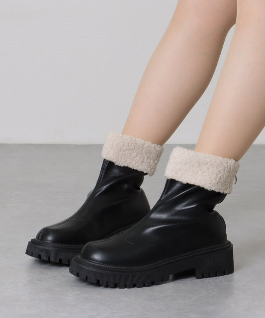 ラウンドトゥ ボア付き トラック ショート ブーツ
