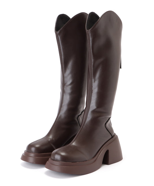 ラウンドトゥ レザー調 厚底 ニーハイ ロング ブーツ