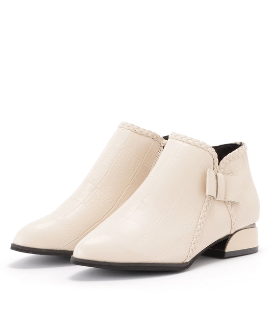 レザー調 バック ファスナー アーモンドトゥ ショート ブーツ