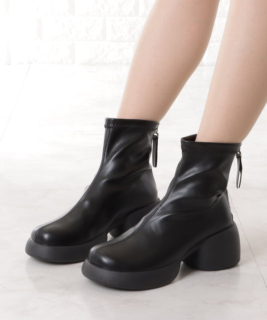 売り切れリアジップアップ 厚底ミディアムブーツ