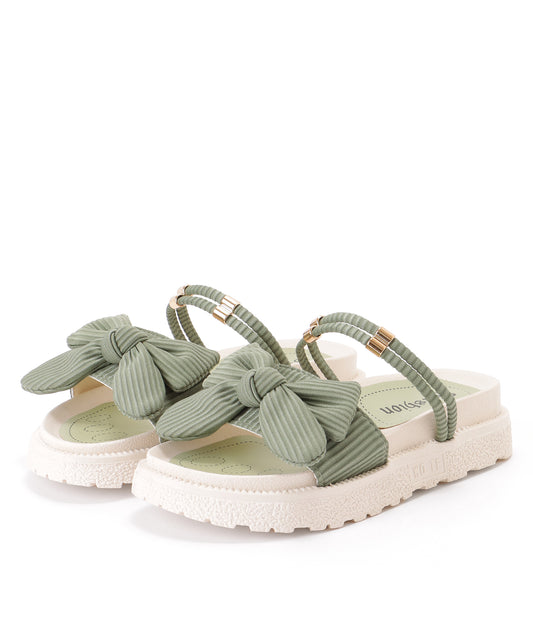 コサージュ付き ナロー ストラップ ミュール サンダル