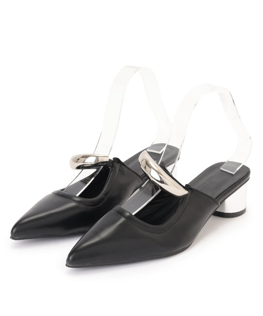 ゴールド メタル ストラップ ポインテッドトゥ ミュール ヒール サンダル