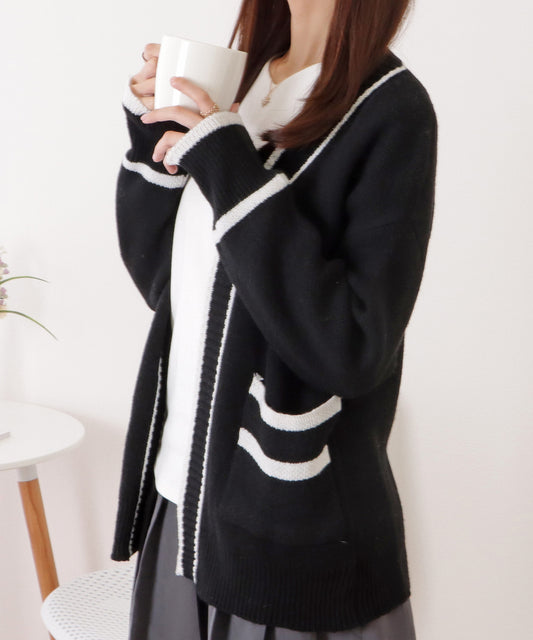 売り切れ配色ラインゆるニットスクールカーディガン
