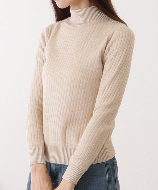配色裏起毛ハイネックリブニットプルオーバー