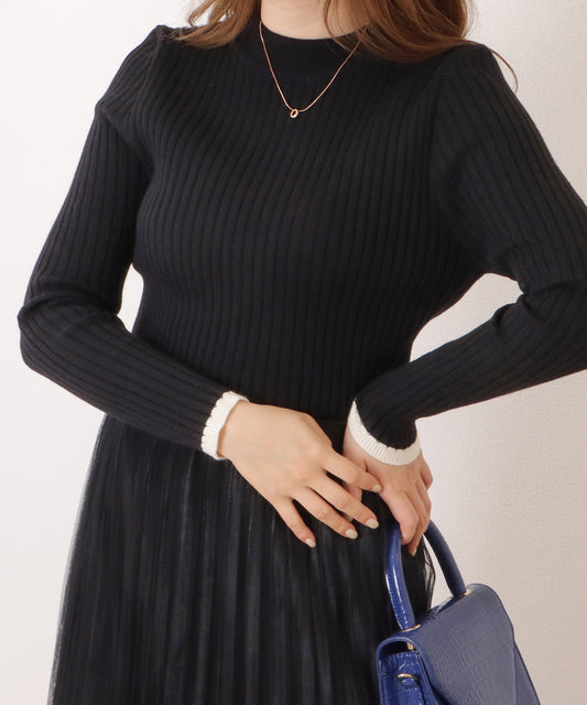 配色ラインプチハイネックリブニットプルオーバー