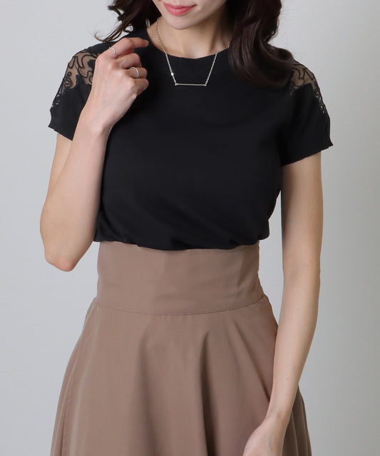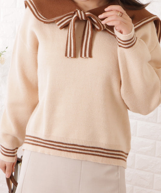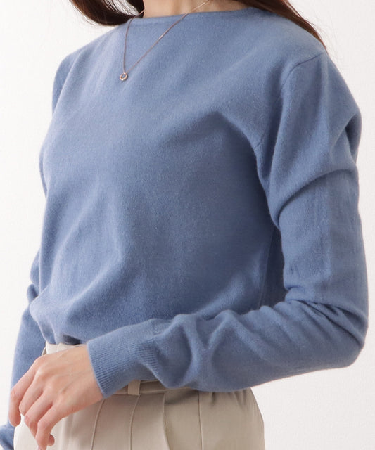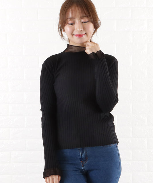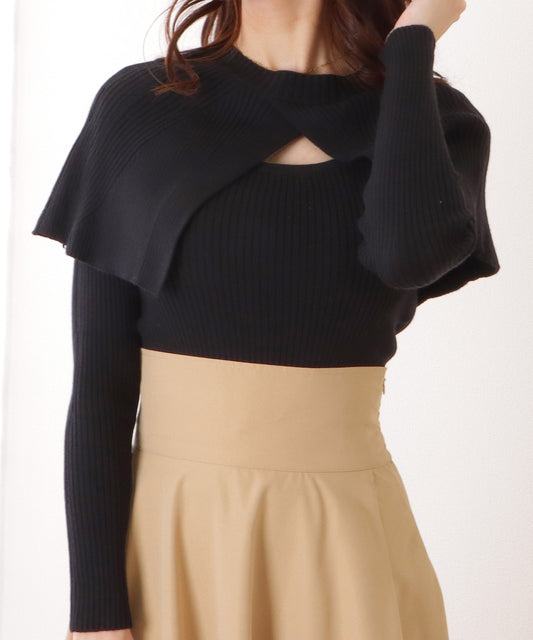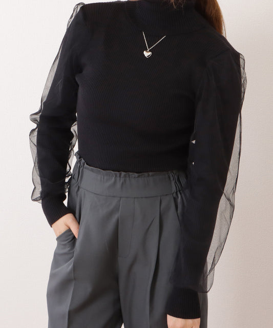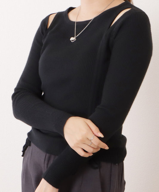 シャーリングリボン付きカットアウトリブニットプルオーバー