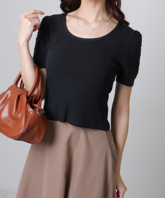 スクエアネック パフスリーブ マルチリブ ニット トップス