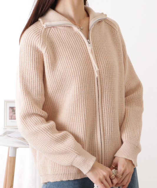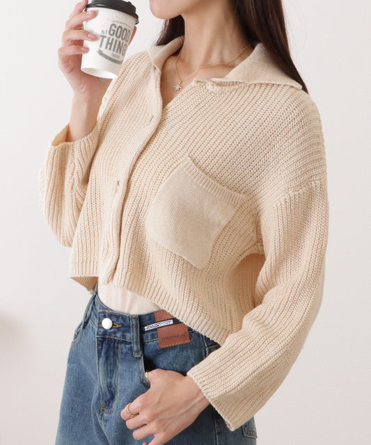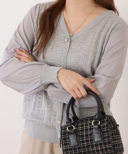 ケーブル柄配色ラインコンパクトニットカーディガン
