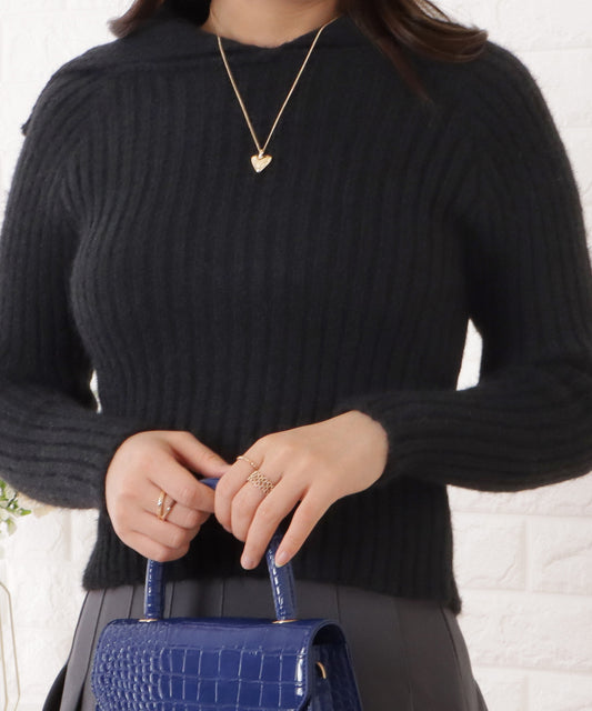 ソリッドカラー サイドボタン リブ ニット ハイネック プルオーバー