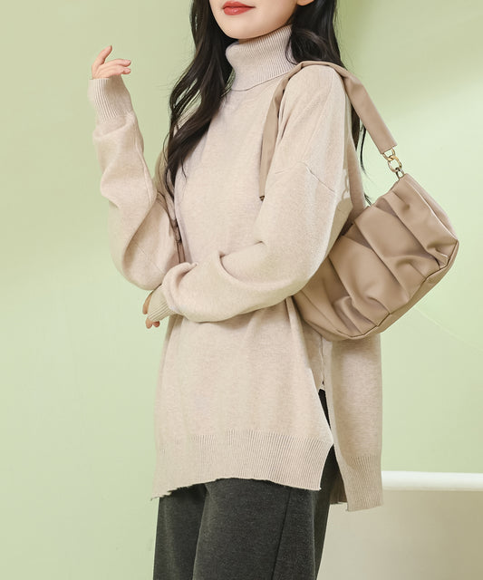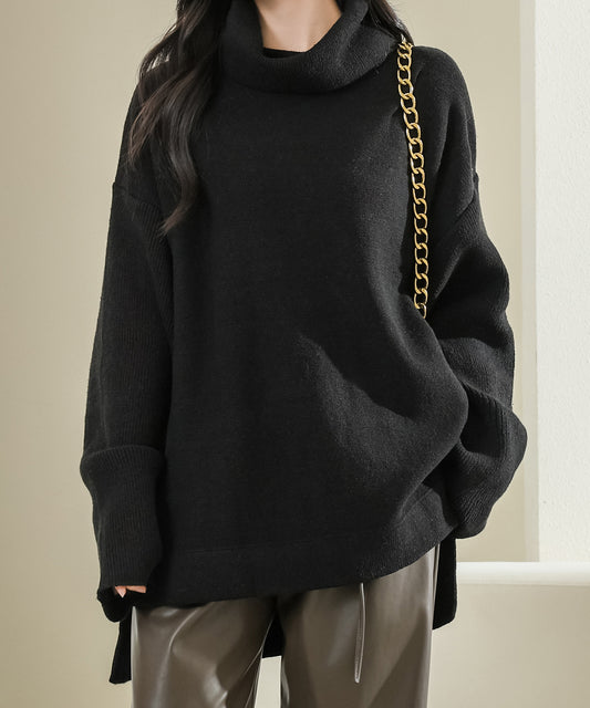 サイド スリット タートルネック 長袖 ニット プルオーバー
