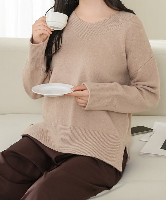 ソリッドカラー Vネック 長袖 ニット プルオーバー