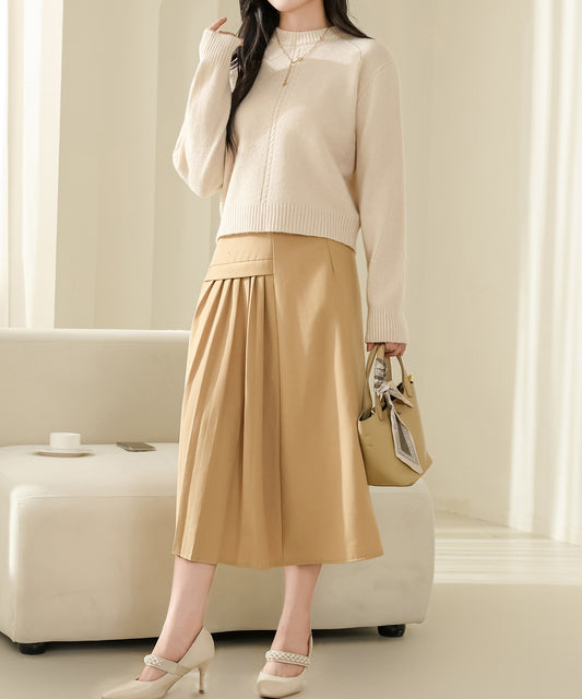 ソリッドカラー クルーネック ケーブル ライン ニット プルオーバー
