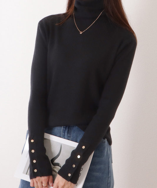 ゴールドボタン付ベーシックタートルネックプルオーバー