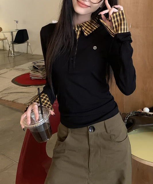 異素材 チェック柄 襟付き ポロ 長袖 プルオーバー