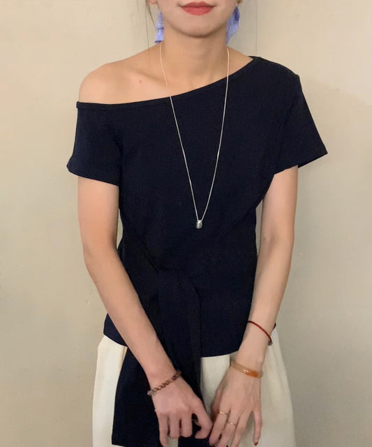 ワンショルダー ウエストリボン アシンメトリー 半袖 カットソー
